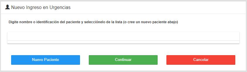 en la esquina superior derecha del panel superior Se muestra un panel central que solicita información acerca del paciente que se va a admisionar: