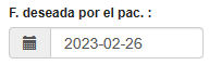 Por defecto se muestra la fecha actual. Para modificarla haga clic en la fecha de la cita y escoja del calendario la fecha deseada: